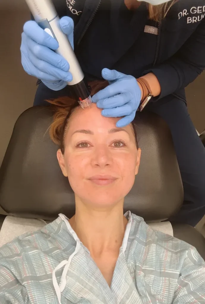 One treatment I’ve recently added is Microtox, which is a subtler form of Botox. I get tiny amounts in a few areas to relax the fine lines and slightly lift my brow for symmetry. The goal isn’t to freeze my face but to soften the lines and maintain a natural, refreshed look.