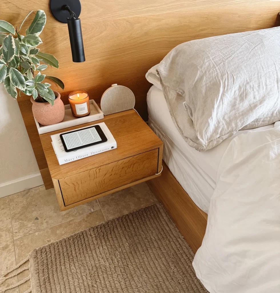 I charge my phone in another room entirely, rely on an old-school alarm clock, and keep a notebook beside my bed. If something pops into my head — a task, an idea, a reminder — I write it down and let it go, rather than spiraling in mental to-do lists.